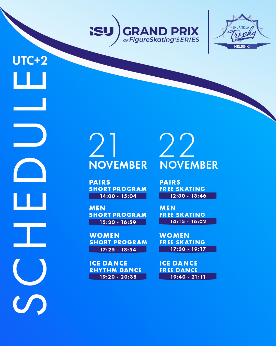 Find event information, schedule for Men, Women, Pair Skating and Ice Dance Figure Skating competition as part of the ISU Grand Prix.