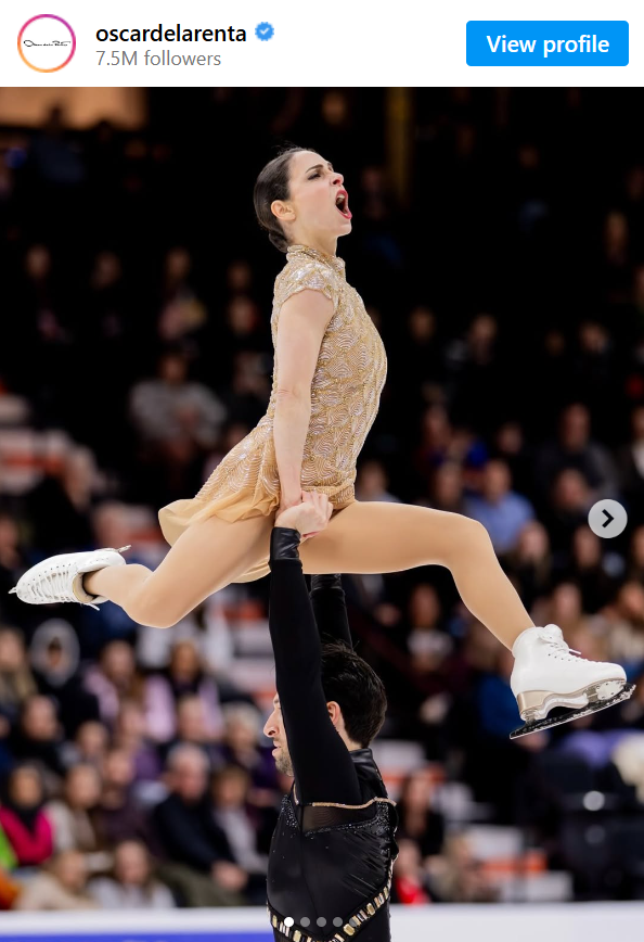 Deanna Stellato-Dudek (CAN) will wear dresses designed by Oscar de la Renta for the Olympic Pair Skating