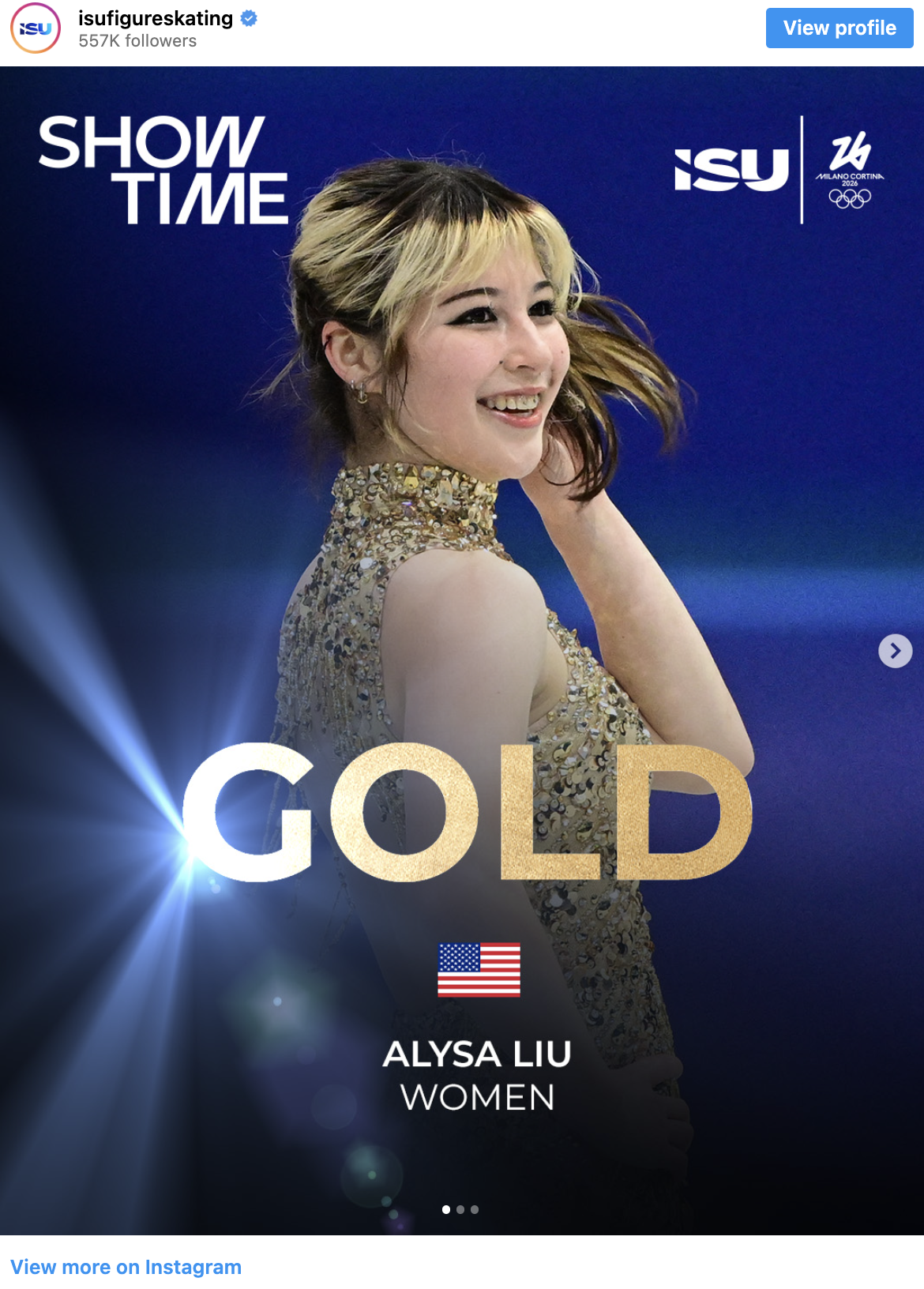 Reigning ISU World Champion Alysa Liu (USA) skated off with gold, the first Olympic gold for a U.S. woman since 2002. Japan’s Kaori Sakamoto claimed the silver medal while Short Program leader Ami Nakai earned the bronze in her Olympic debut.