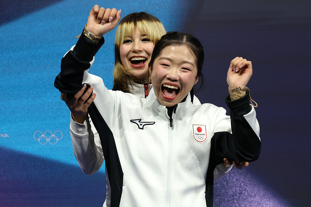 Ami Nakai (JPN) celebrates with Alysa Liu after securing a bronze medal in Milan © Getty Images