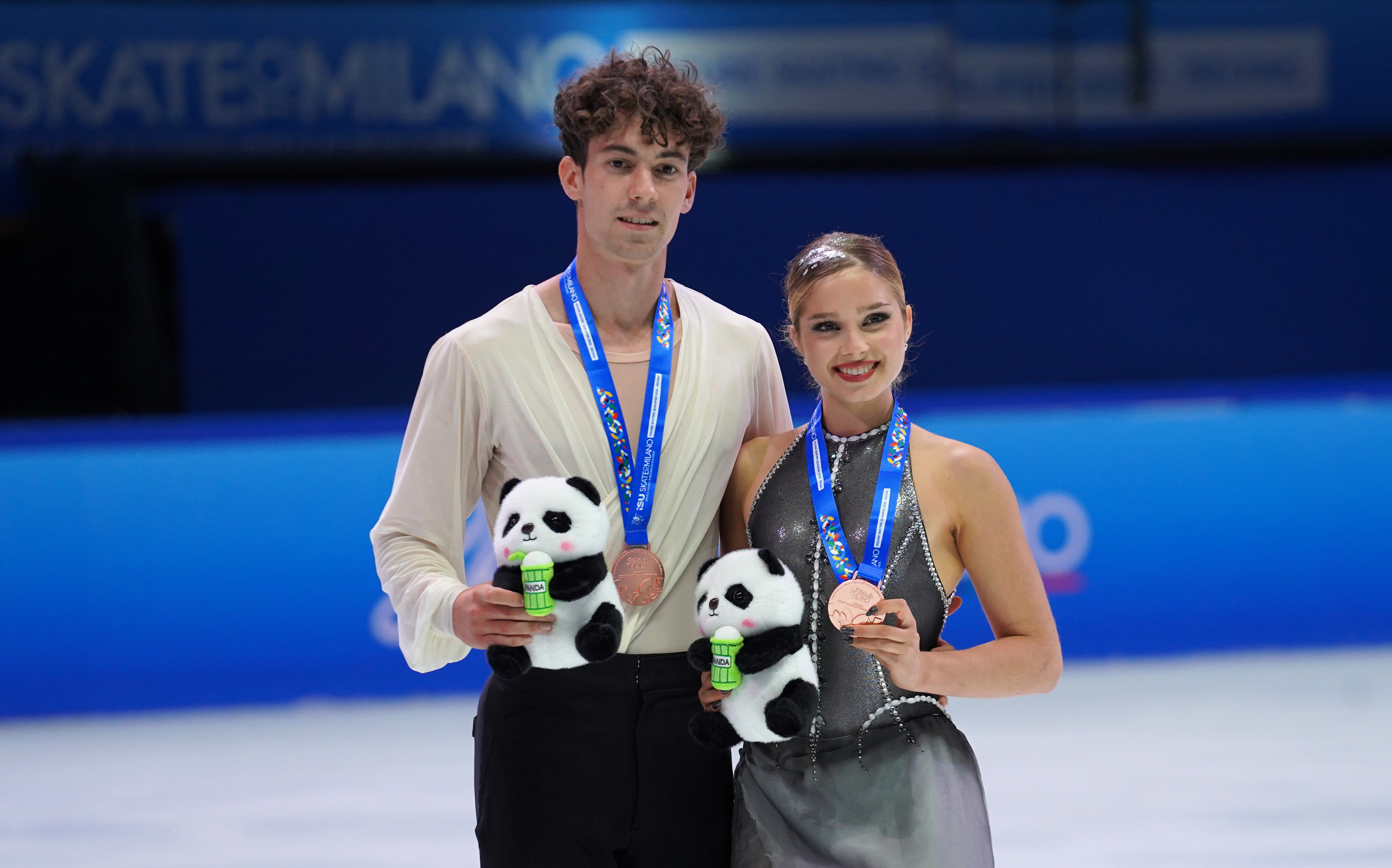 The tension in Beijing at the Skate to Milan qualifier last September was high with only four spots available. Val & Kazimov were fifth in the Rhythm Dance but they made it by pulling up to third in the Free Dance. This bronze was the most beautiful medal they have earned so far.