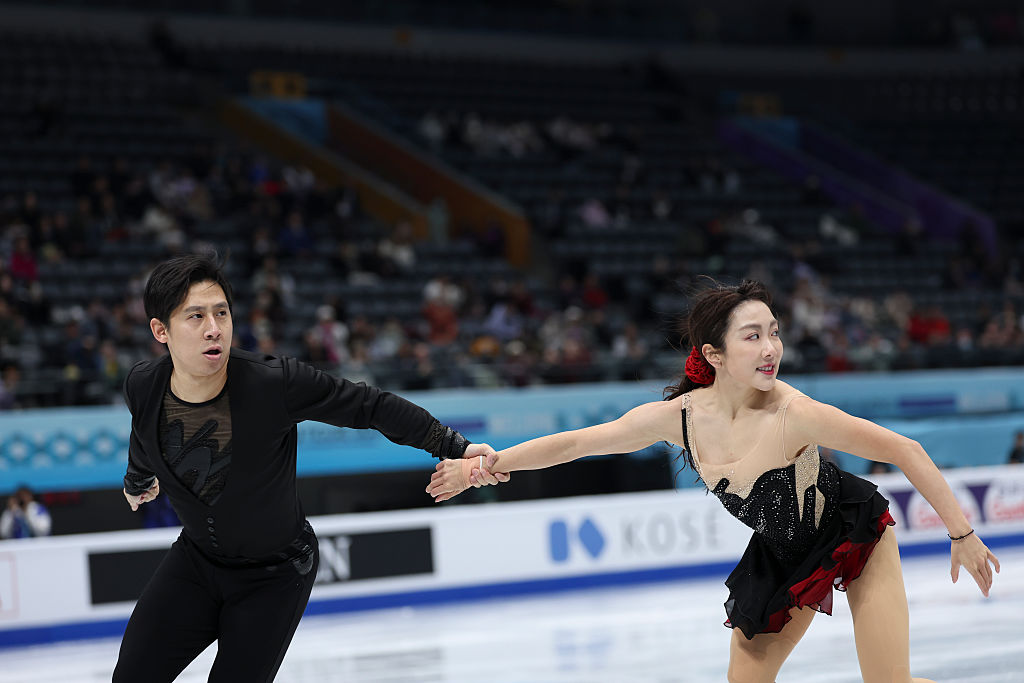 Nagaoka & Moriguchi’s performance to “Goodbye Yellow Brick Road” was highlighted by a rarely seen side-by-side triple loop, a throw triple Salchow and a lasso lift with great ice coverage. The Japanese champions set a personal best of 71.95 points and are in a medal position for the first time at a major international event.