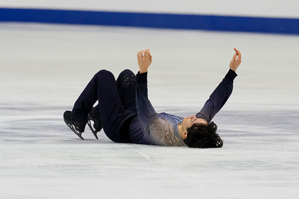 Yuma Kagiyama (JPN) collapsed to the ice after his Free Skate, not knowing whether he had done enough to secure a third successive NHK Trophy gold. He had. © ISU