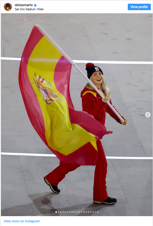 Spanish ice dancer Olivia Smart learned that she would be a flag bearer following the ISU European Championships last month.
