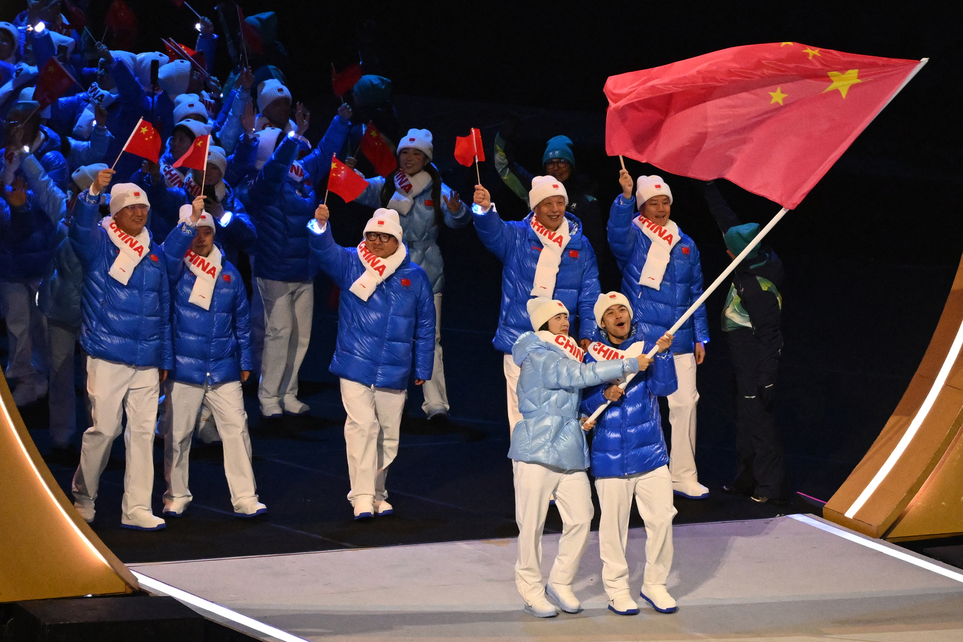 China's flag bearers Zhang Chutong and Ning Zhongyan during the opening ceremony of the Olympic Winter Games Milano Cortina 2026 on 6 February, 2026 in Milano © Getty Images