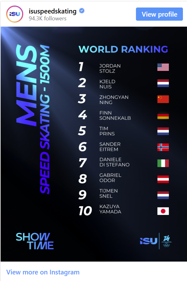 Jordan Stolz has already conquered the Olympic Gold for 500m and 1000m competitions but he might face stiff competition in the Men's 1500m. Here are the World Rankings: