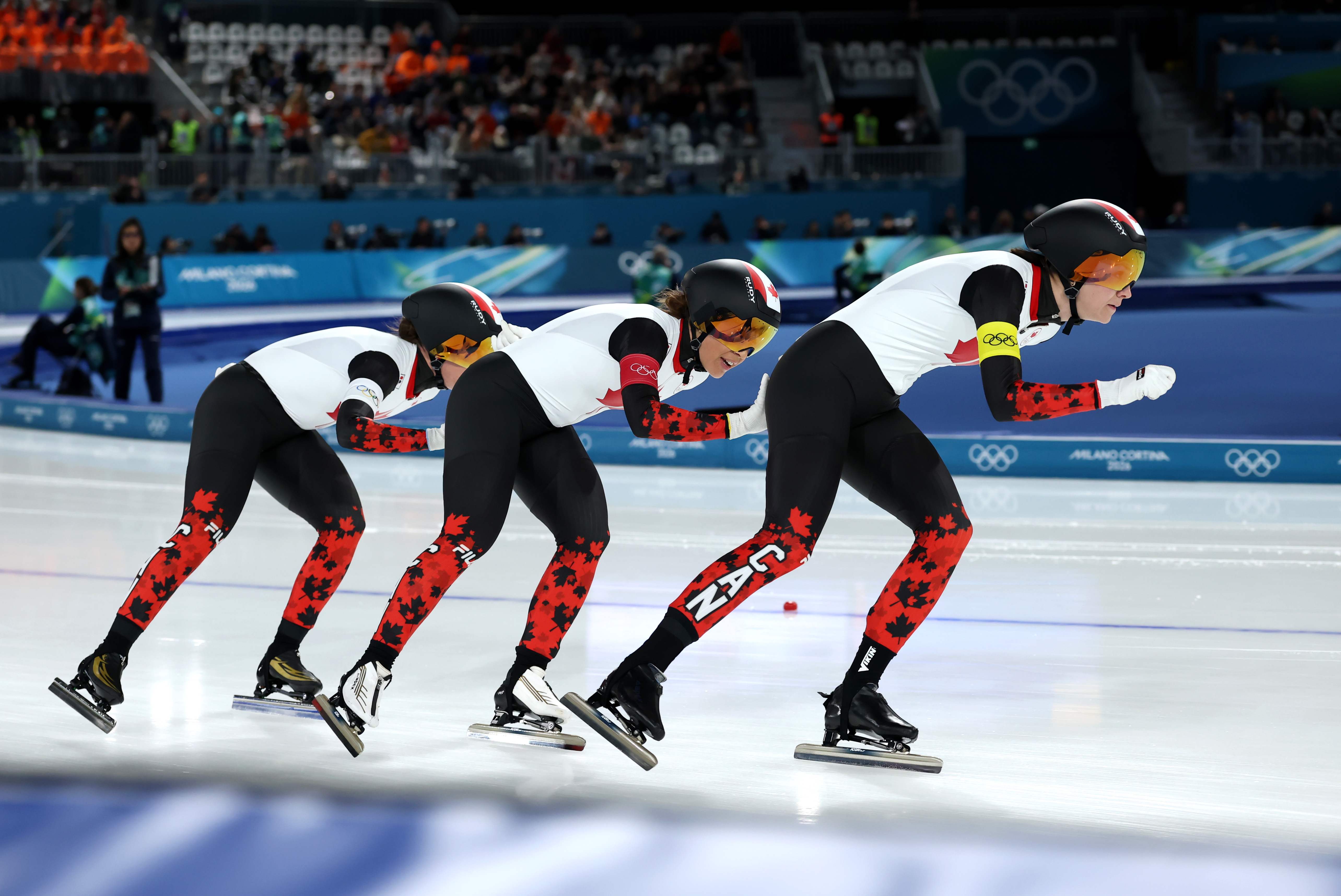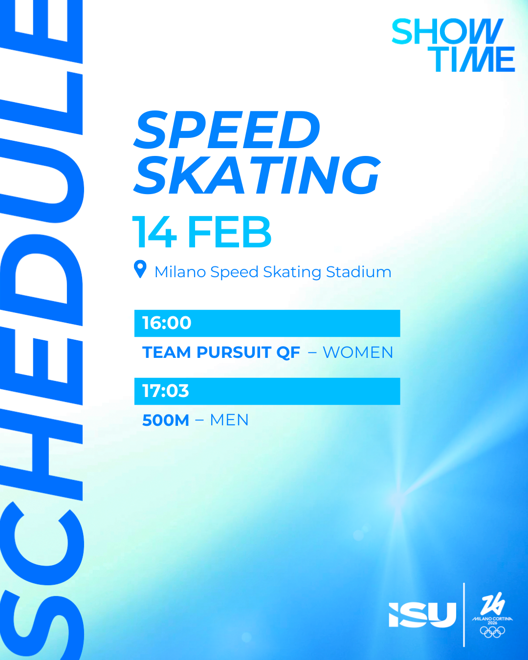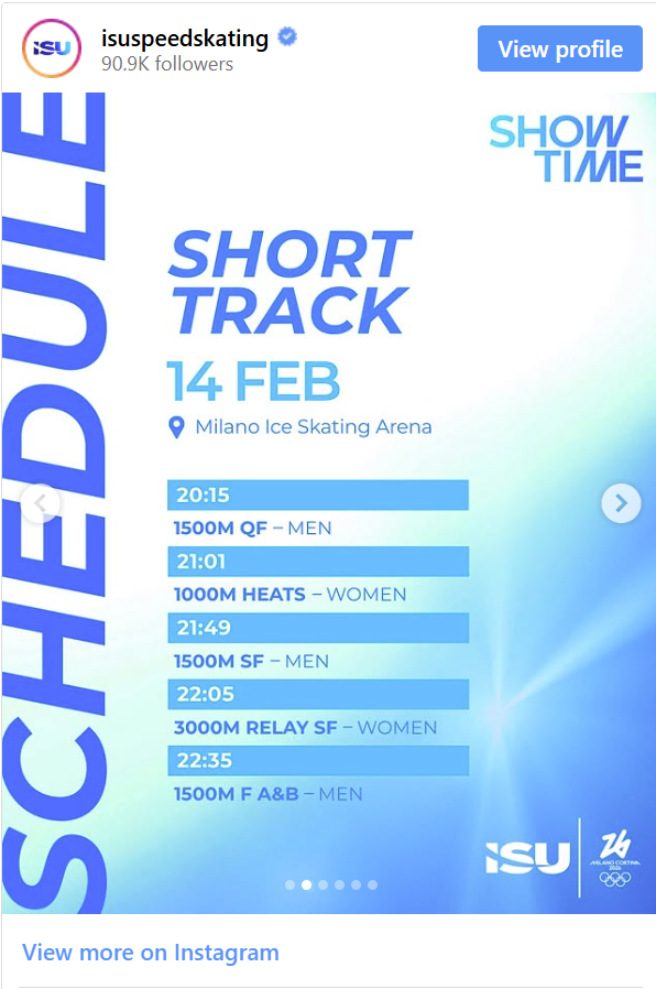 We have the first Speed Skating Team Event in the form of Women's Team Pursuit Quarterfinals followed by Men's 500m medal event.