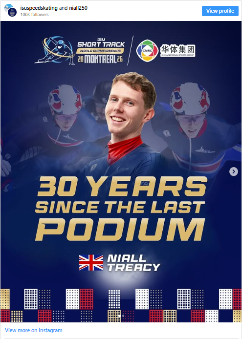 It is Richard Shoebridge, British Ice Skating’s head performance coach, who best sums up just what Niall Treacy has done in securing his nation’s first individual men’s Short Track Speed Skating World Championship medal for 30 years.