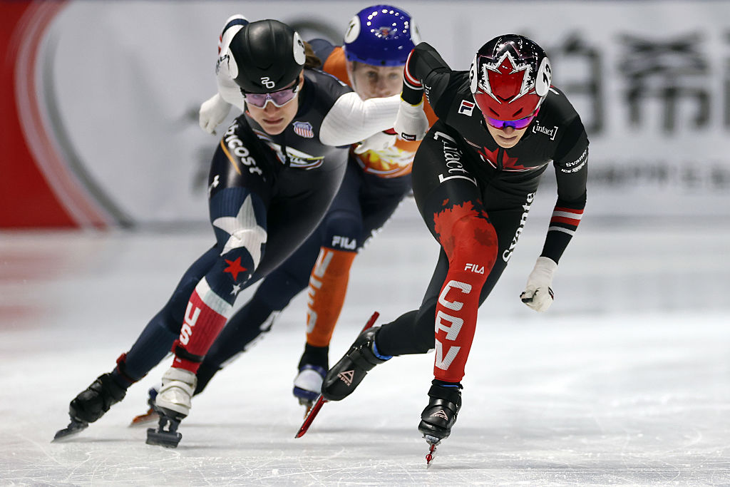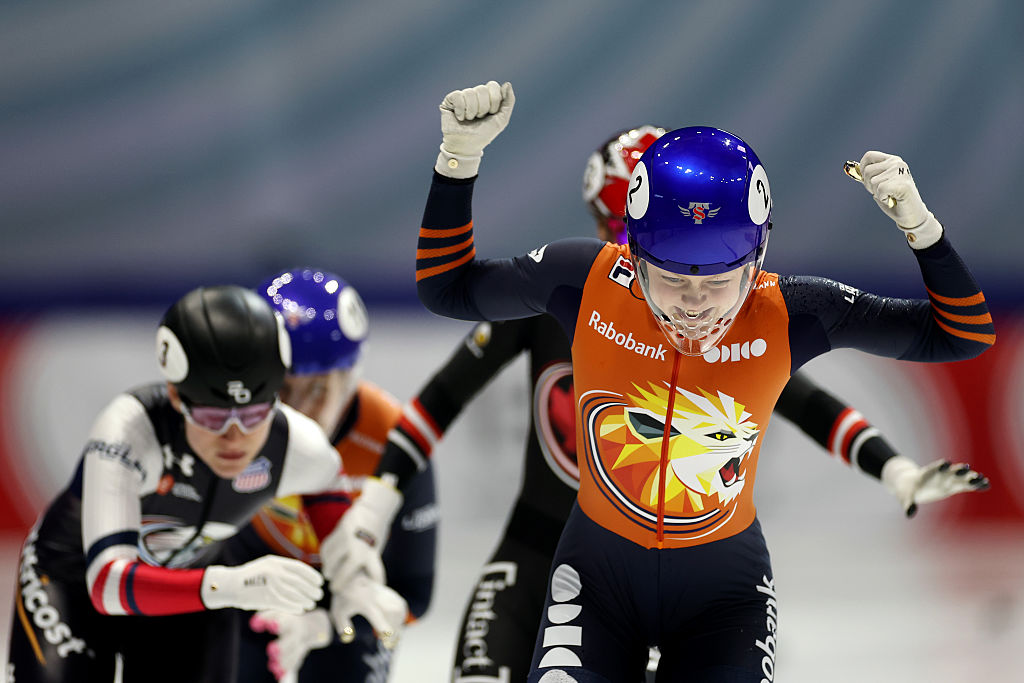 In Montreal, Kim Boutin had the best shot. A former world-record holder in the distance, the Quebec local hit the front early and tried to outgun the current champion. Stoddard has also been getting quicker in the 500m and was also in the mix. But Velzeboer once again had the jets to take gold, making a fine inside pass on Boutin on the first corner of the last lap.