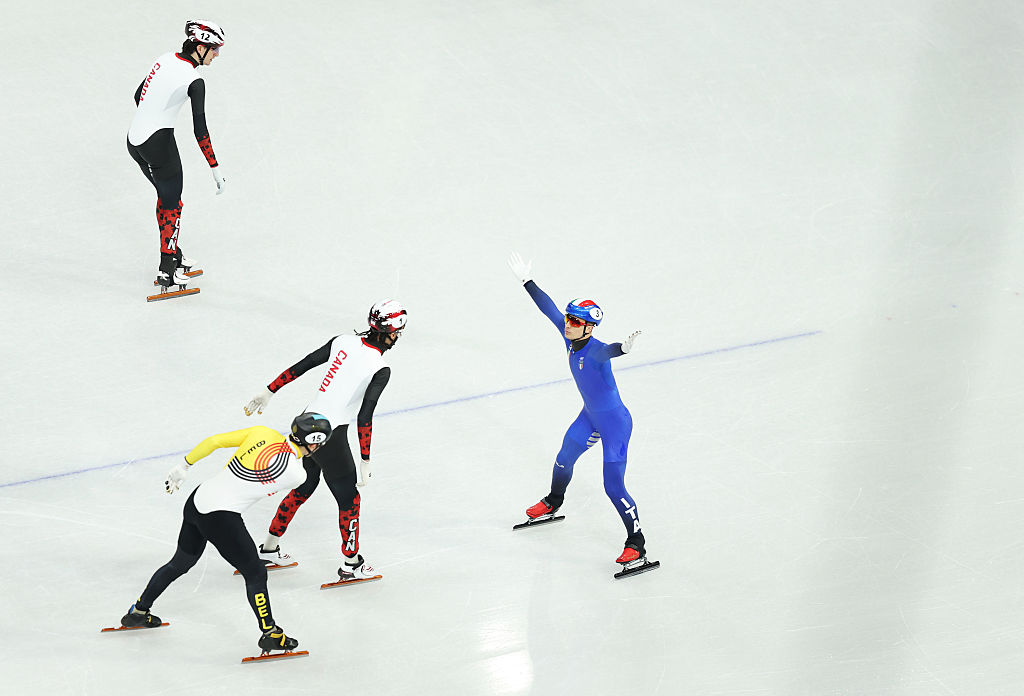 China led early into the race but with six laps to go, Italy, who advanced easily to the Final, pulled ahead and never relinquished the lead. On the last meters, Canadian star William Dandjinou got closer and closer, but could not overtake Pietro Sighel, the final Italian racer. As he crossed the finish line, Sighel celebrated by turning around and greeting the fans in the packed Milano Ice Skating Arena.