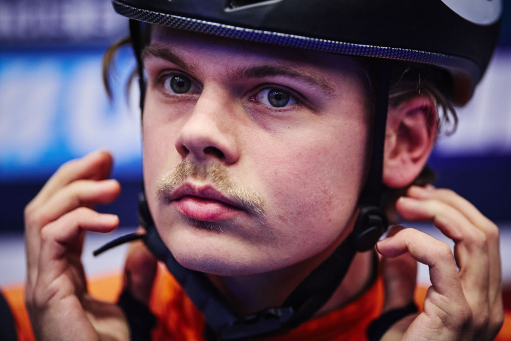 Melle van 't Wout (NED) looks on ahead of the men's 500m final during the 2023 ISU European Short Track Speed Skating Championships in Gdansk, Poland © ISU