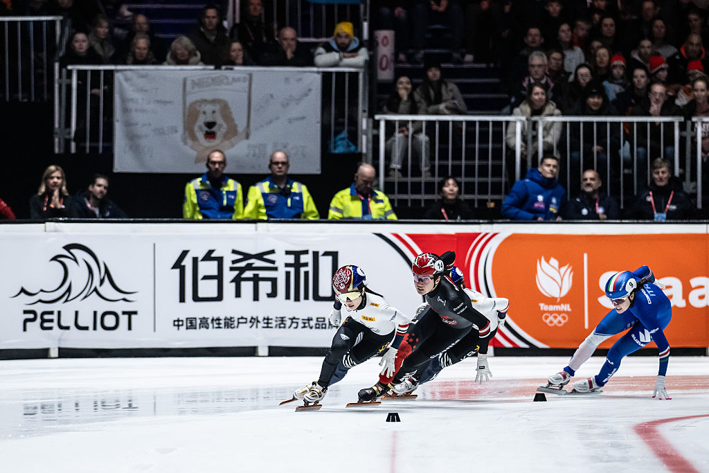First, she had the 1500m, where she faced Stoddard in a stacked semifinal. Sarault stepped on it from the front to ensure smooth progress and, for a while, it looked like rinse-and-repeat in the final as Sarault swung past Stoddard with six laps to go. But as Stoddard fell to the ice in a mix up with reigning 1000m world champion Hanne Desmet (BEL) and home hero Xandra Velzeboer (NED), Korean White Tiger Kim Gilli slipped through on the inside of Sarault to snatch victory. Kim’s teammate Choi Min Jeong took bronze.