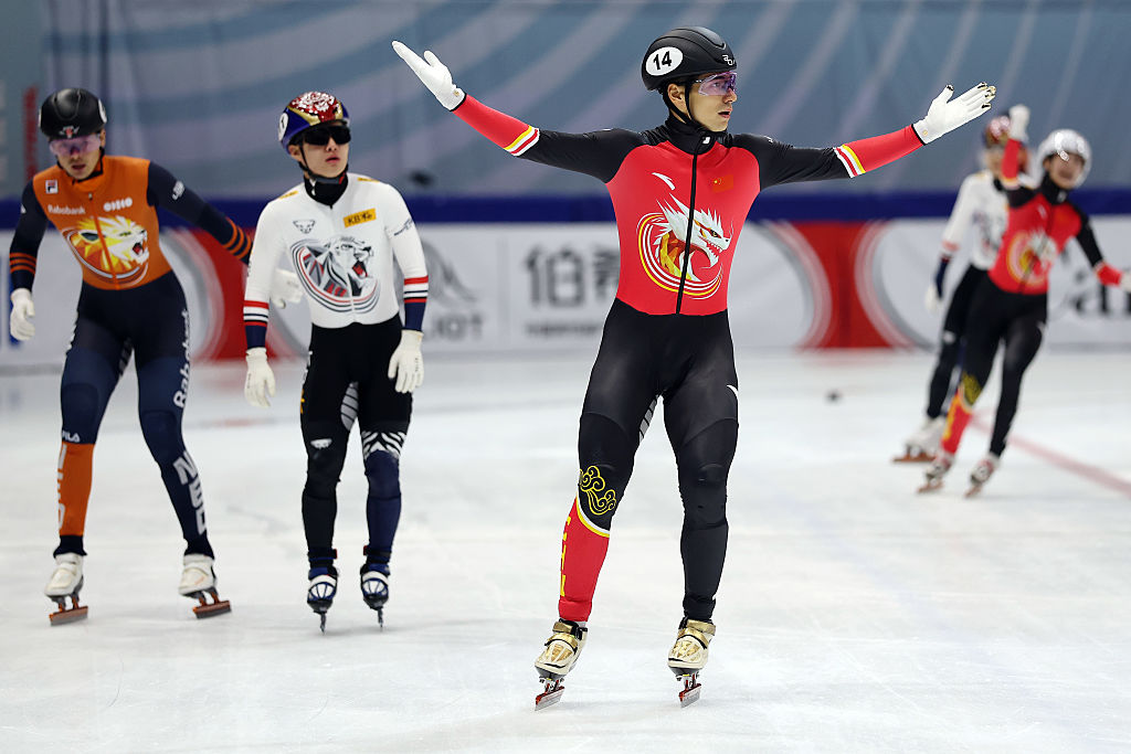 Liu Shaoang celebrates the Chinese Loongs' win in the Mixed Team Relay in Montreal on Sunday © ISU