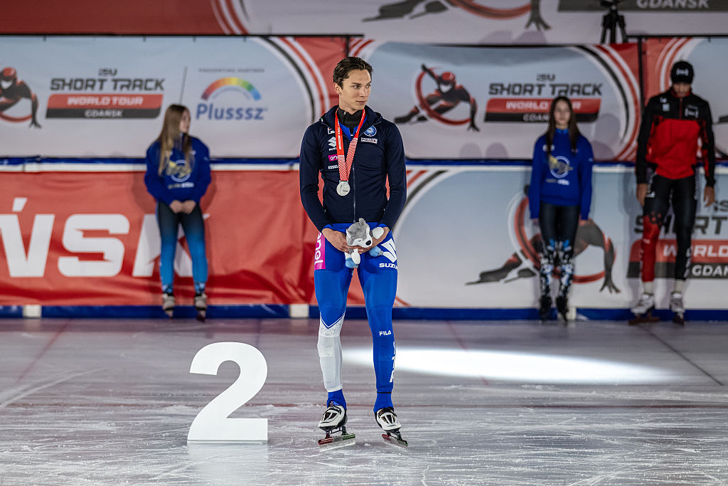 Silver medalist Thomas Nadalini (ITA) after the men’s 1500m at the ISU Short Track World Tour in Gdansk, Poland © ISU