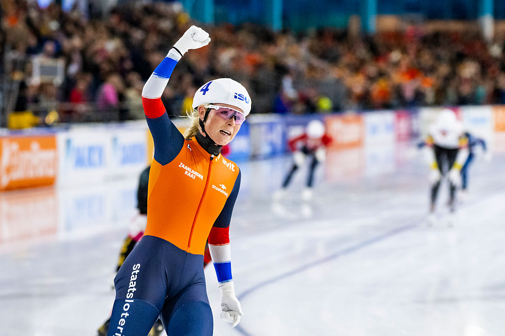 Marijke Groenewoud (NED) wins the Mass Start at the ISU World Cup Speed Skating at Thialf Ice Stadium in Heerenveen © ISU