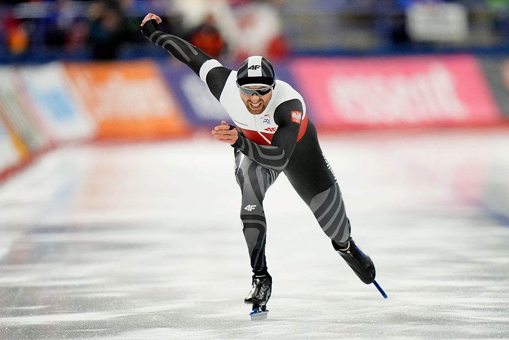 Damian Zurek (POL) finished in a personal best time of 33.85 seconds, just .06 seconds behind Jordan Stolz (USA) in the 500m on Sunday. © ISU