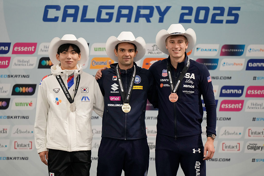 The Italian outpaced Chung Jae Won (KOR) and Jordan Stolz (USA) on the final day of the ISU World Cup in Calgary.