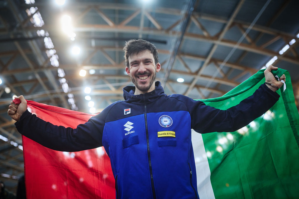Italy's Davide Ghiotto after winning the 10,000m world title in March 2025 in Hamar, Norway. © ISU