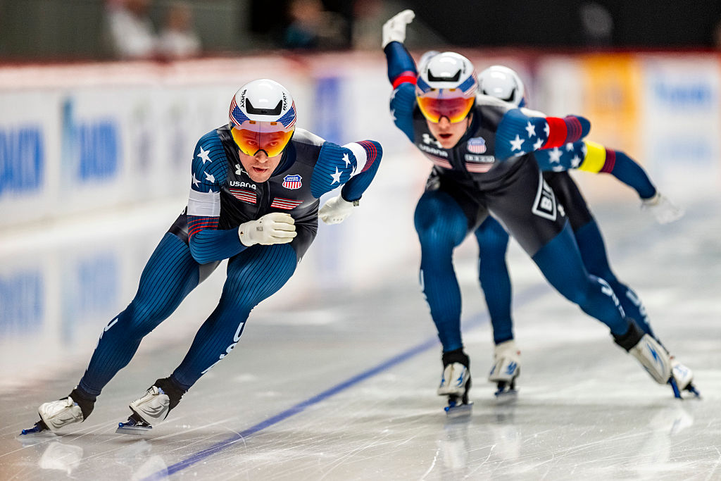 Conor Mcdermott-Mostowy, Cooper McLeod and Zach Stoppelmoor (USA) set a track record in the Team Sprint, Stoppelmoor hoping the discipline will be added to the Olympic program © ISU