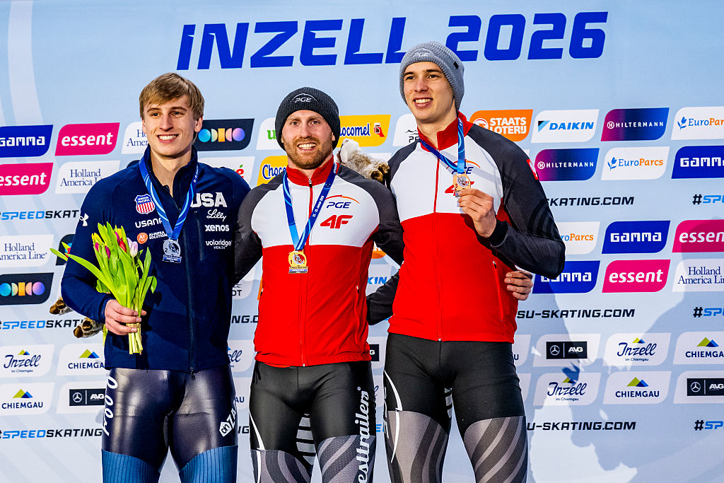 Damian Zurek (POL) broke the Inzell 500m track record for the second time this weekend to win a second gold and secure second place in the ranking © ISU