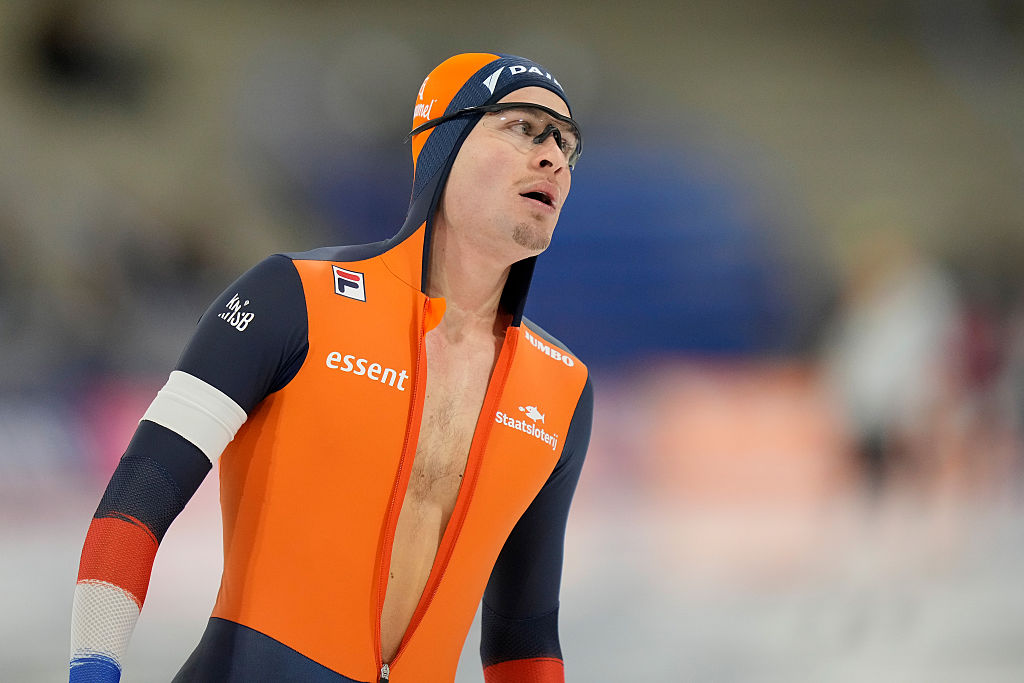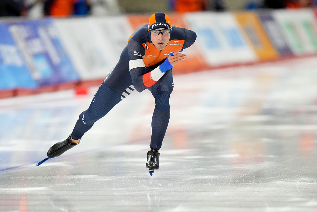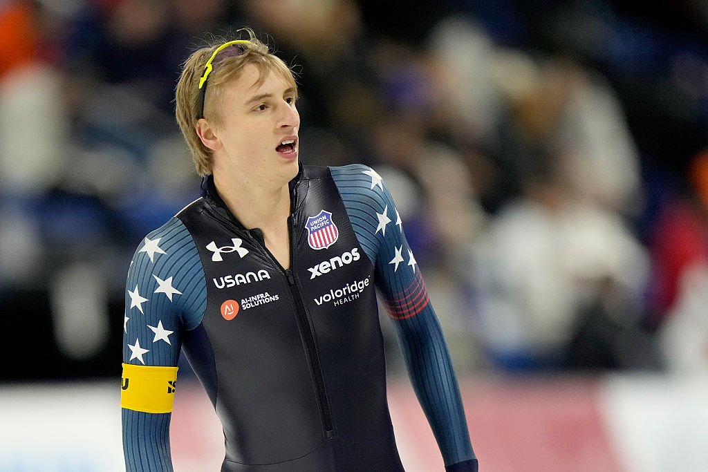 Before the long-distance battle, Jordan Stolz (USA) held off a strong challenge by Jenning de Boo (NED) to win the 1000m by just .11-seconds.
