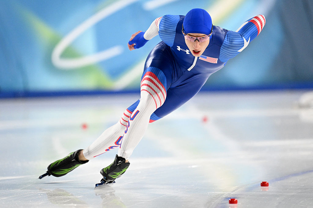 Jordan Stolz (USA) attacked Ning's time but had to settle for silver © Getty Images