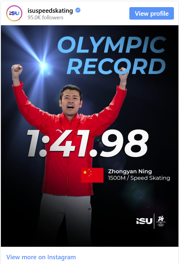 There's plenty more of Speed Skating action coming up in the next few days and we can see more records being broken. Stay tuned!