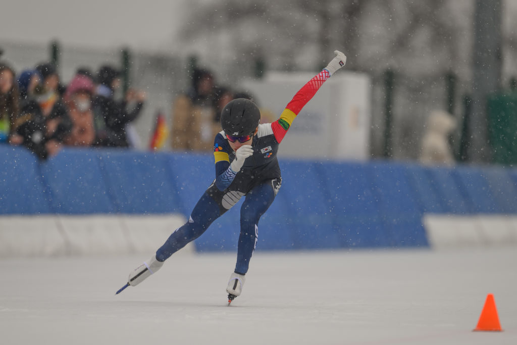 Lim Leewon (KOR) competes in the Team Sprint at the World Junior Speed Skating Championships at Collalbo (ITA) in February 2025 © ISU