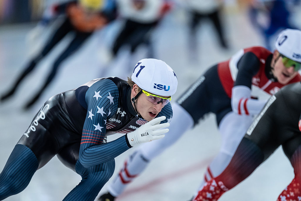 Italy (left) and the Netherlands (right) took silver and bronze behind the dominant Americans as thoughts turn towards the Olympic Games. © ISU