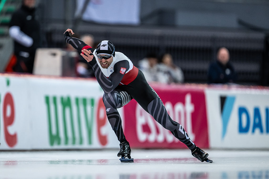 Damian Zurek (POL) came closer than anyone to denying Jordan Stolz (USA) gold this weekend, taking 500m silver by just 0.001s. © ISU
