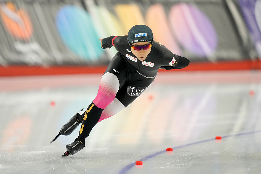 World Record holder Miho Takagi (JPN) won her pairing, but settled for silver Saturday at the ISU World Cup in Calgary. © ISU