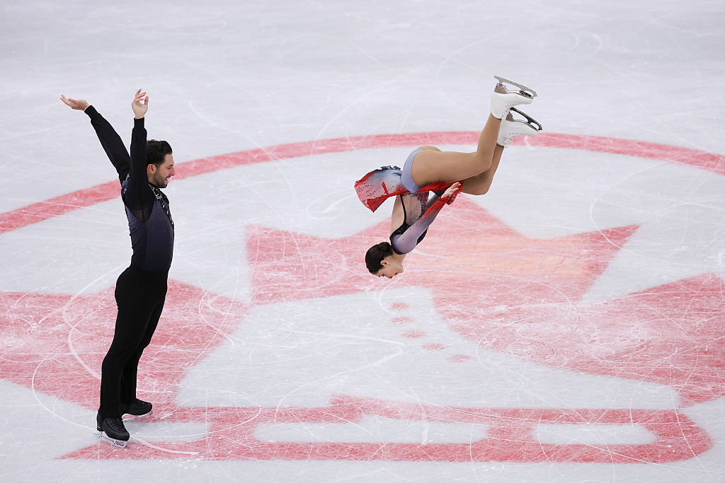 Stellato-Dudek/Deschamps' dramatic performance to “Carmina Burana” was highlighted by a level-four triple twist and a throw triple loop, and the crowd cheered loudly when Stellato-Dudek performed her unique backflip in the step sequence. However, the death spiral was rated a level one. The 2024 ISU World Champions earned 73.03 points.
