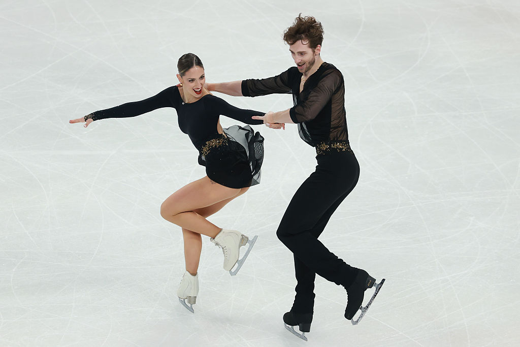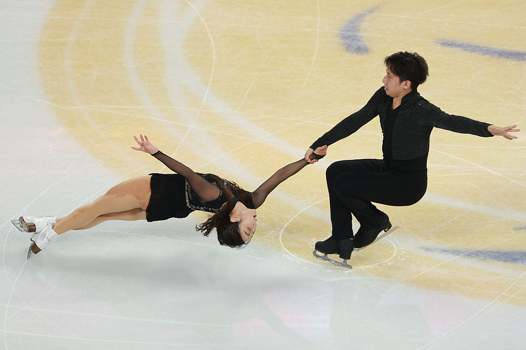 Sui/Han had to skate first as they had not competed since the 2022 Olympic Winter Games and no held longer world ranking points. Sui missed the opening triple toeloop but the Olympic Champions recovered to produce a triple twist and throw triple Lutz. The two-time ISU World Champions earned 72.45 points for their crisp Flamenco program to “Habanera”.