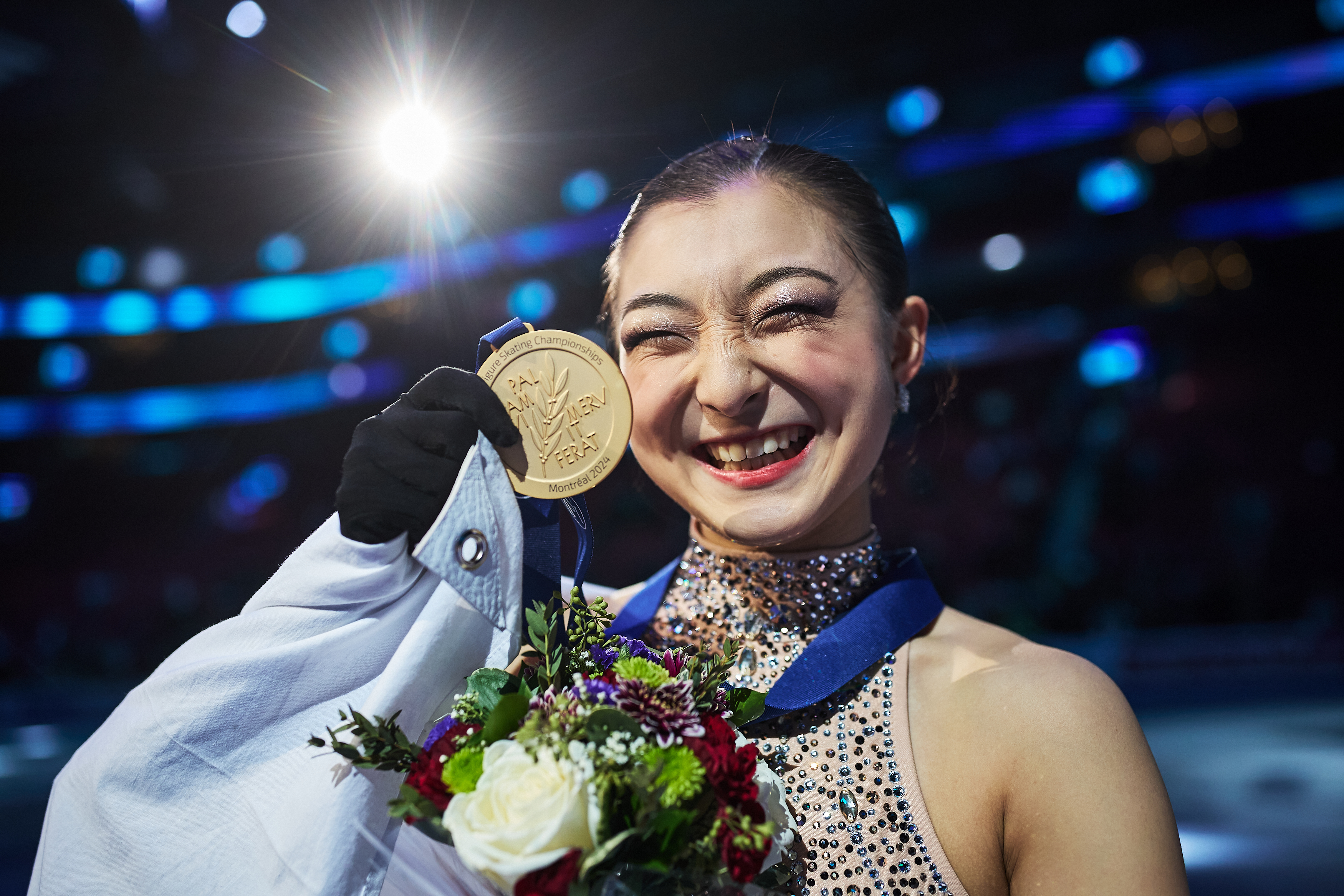 Kaori Sakamoto poses in the Women's medal ceremony during the ISU World Figure Skating Championships in Montreal, Canada 2024 © ISU