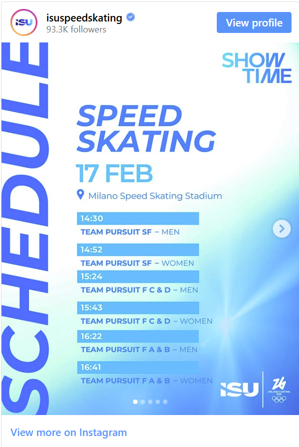 Plenty of Speed Skating action coming up today!