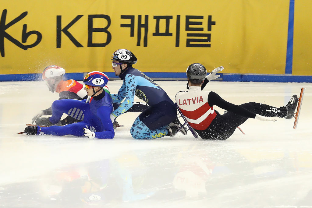 Spills are common in Short Track, with the culprits often disqualified and innocent parties advanced © ISU