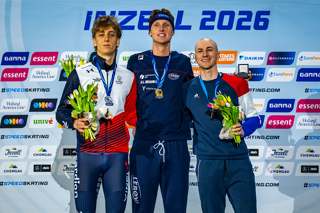Metoděj Jílek (CZE, left) came in behind pairmate Eitrem to seal the long-distance Trophy. Previous record holder Timothy Loubineaud (FRA, right) took bronze © ISU